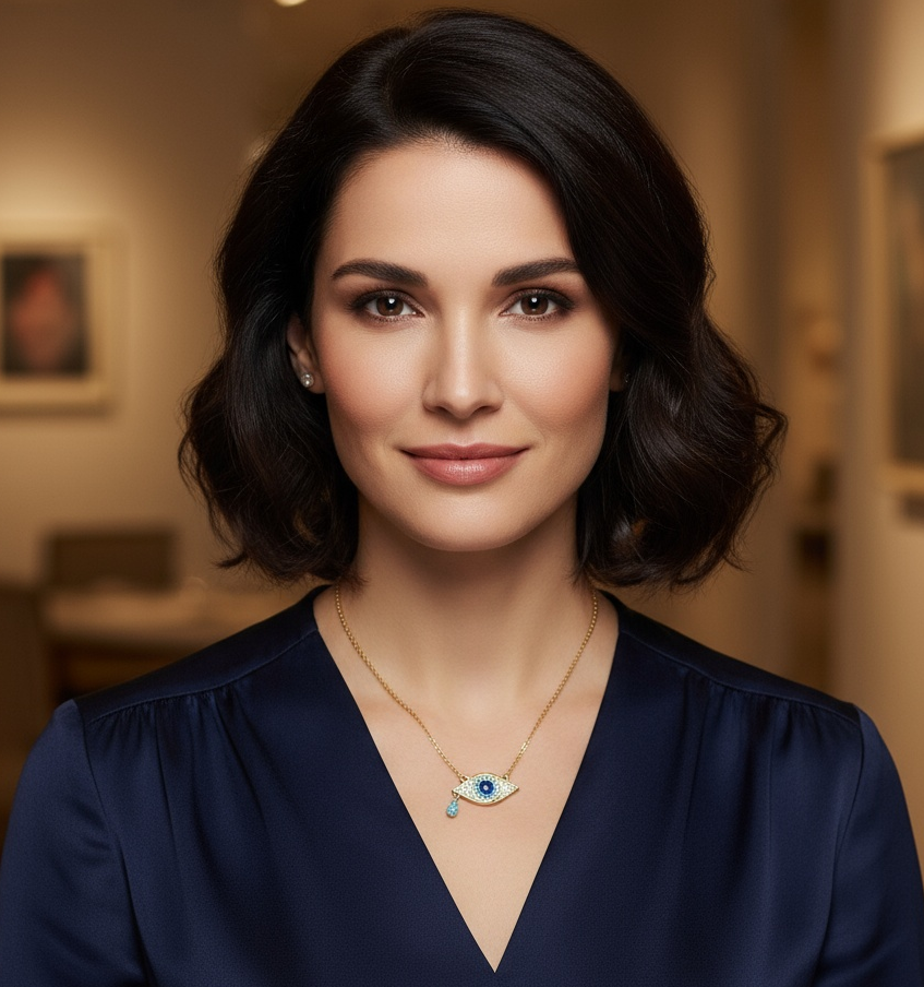 This Evil Eye necklace combines traditional symbolism with contemporary elegance. Crafted from gold-plated brass, the design features a striking evil eye motif adorned with sparkling cubic zirconia and authentic turquoise accents. The 18-inch length offers versatile styling for layering or standalone wear. Rooted in centuries of protective tradition, the evil eye symbol is believed to deflect negative energy and invite positive fortune into your life. An ideal choice for those seeking meaningful jewelry that merges cultural heritage with refined aesthetics. Pendant Measurements: height 0.4", width 0.8".