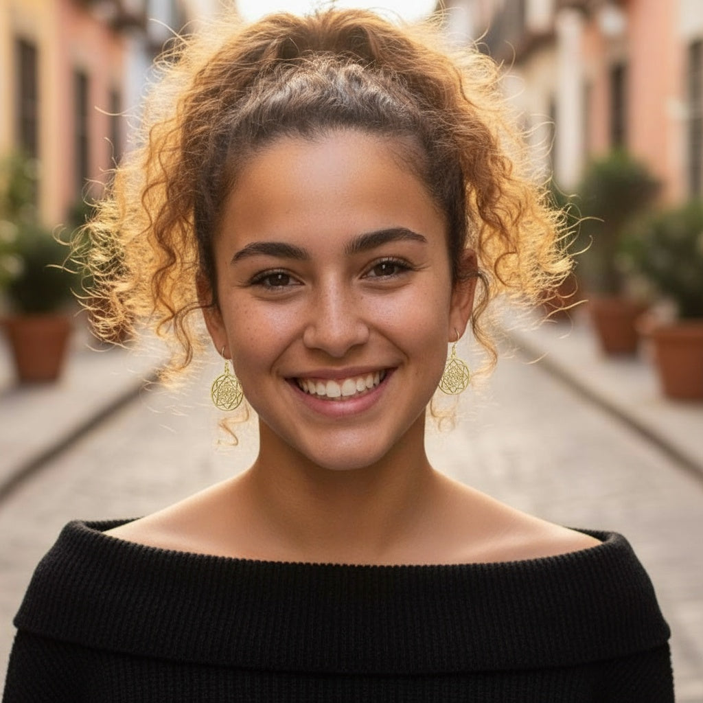 Handcrafted solid brass earrings featuring an intricate flower mandala pattern, designed for effortless versatility. Each pair measures 1.5" in height and 1" in width, striking a refined balance between statement presence and everyday wearability. The dangle silhouette moves gracefully with you, while the timeless mandala motif complements both classic and contemporary wardrobes. Expertly crafted from quality brass for lasting durability and a warm, luxurious finish.
