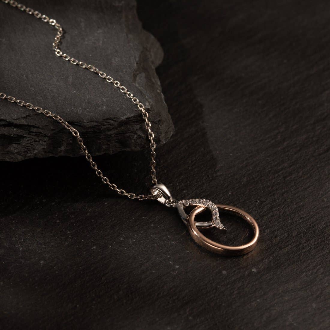 Elevate your jewelry collection with this sophisticated regal pendant for women. Pendant, crafted from premium 925 sterling silver, with cubic zircon accents and enhanced with rose gold plating. The distinctive marquise leaf silhouette creates an elegant, elongated profile that catches light beautifully, while the two-tone finish adds contemporary contrast and versatility. This refined piece seamlessly transitions from everyday wear to special occasions, offering timeless appeal with modern design sensibility. Perfect for layering or wearing as a standalone statement, it combines superior craftsmanship with enduring style. Pendant measurements- height 1", width 0.5", comes with an 18" stainless-steel chain.